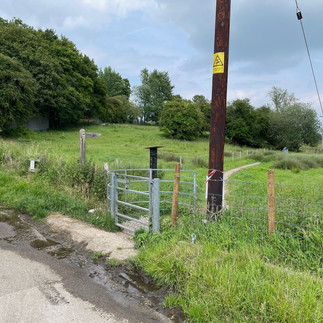 Turn left on London Road and walk along the pavement. Cross the road when you reach the former chapel opposite and take the path to the left of it. The path leads into fields, go through the gate into the next field. Keep ahead passing a house on the left and into another field.