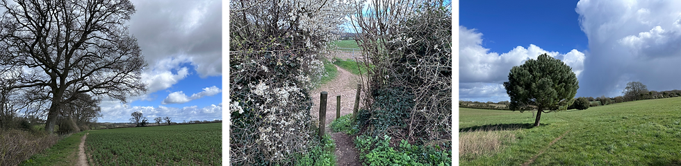 Terrain: Varied terrain with mostly footpaths through fields, farm tracks and bridleways. Short sections on country lanes.